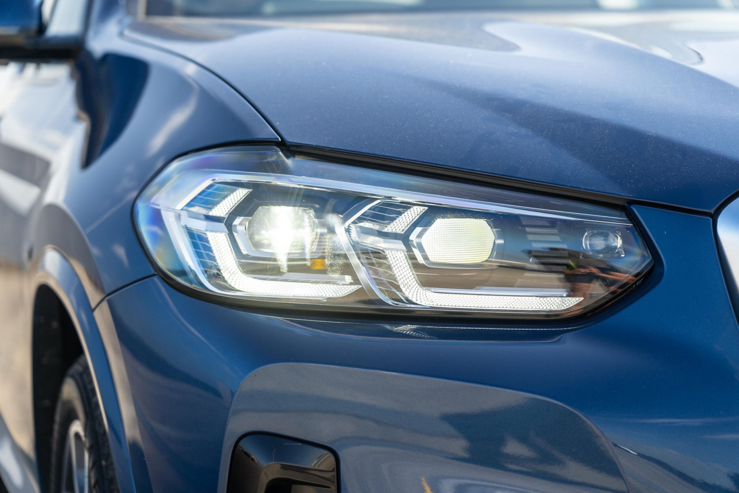 A ênfase marcante na largura e nos elementos típicos da série X conferem à frente do BMW X3 uma aparência extremamente distinta. A grade duplo rim da BMW, com o seu formato angular e o para-choque redesenhado com entradas de ar verticais em uma geometria triangular, destacam a excepcional autoridade do carro. Os faróis totalmente em LED, foram rebaixados em aproximadamente 10 mm, completando a imagem do BMW X3 com uma expressão de modernidade e força.